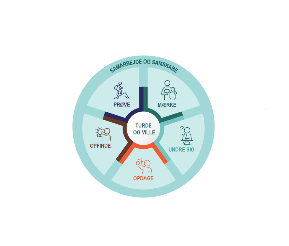 Kompetencehjulet indeholder syv vigtige kompetencer som i sammenhæng er særlig vigtige for at lykkes med innovation.