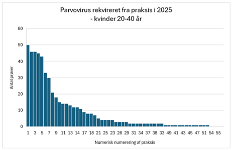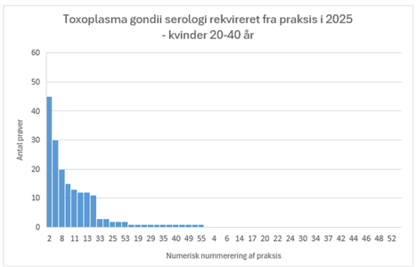 - mens 20 % af de praksis der tager færrest prøver, kun står for < 1 % af prøverne.