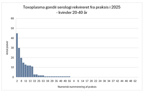 mens 20 % af de praksis der tager færrest prøver, kun står for < 1 % af prøverne. 20 % af de praksis der tager færrest prøver, står kun for < 1 % af prøverne