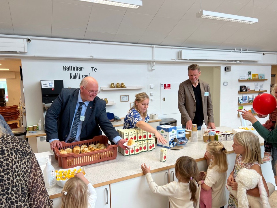Indenfor blev der delt 700 bamseboller, juice og kaffe ud af to af Region Syddanmarks regionrådspolitikere.