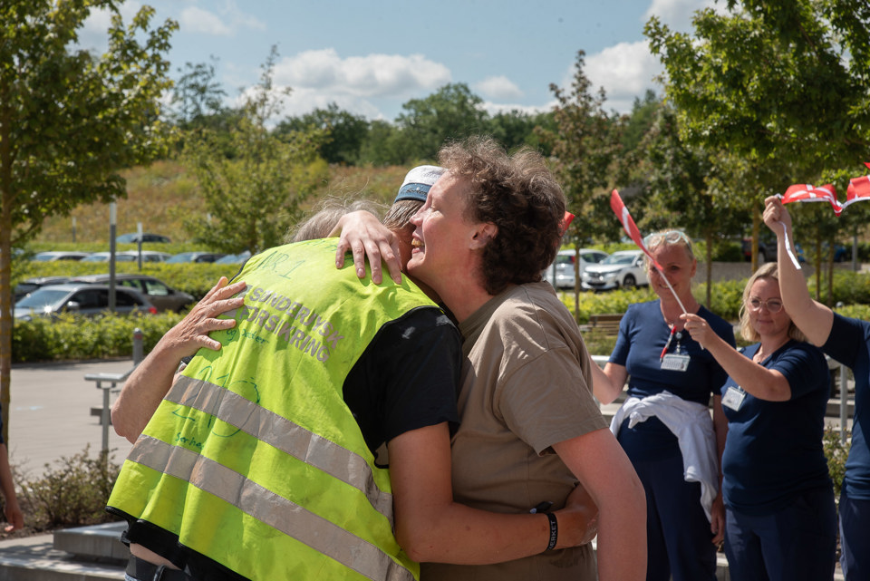 Det var en taknemmelig og rørt mor som sad i kørestolen og stolt ventede på sin søn og hans kammerater.