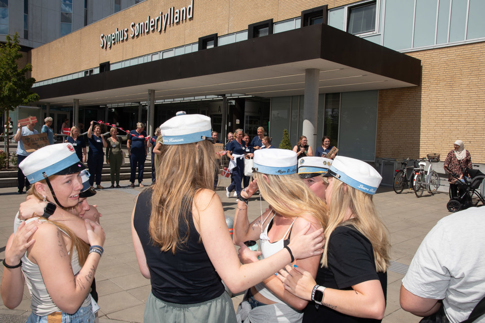 Studenterne får en is og snart er de på vej videre. De vinker hele vejen ud, de fester videre, mens sygeplejersker og andre, som har kigget på, tørrer en tåre væk.
